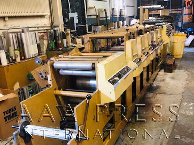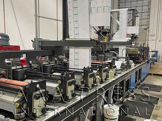 Width: 7", Automatic Throws / Constant Turn Anilox Rolls, 2 Product Rewinds, 1 Waste Rewind, 1 Unwind, 2 Die Stations, 1 Removable Base Roll, 1 Sheeting Station, 1 Laminator, Approx. 50 Ceramic Anilox Rolls, Approx. 60 Plate Cylinders. Includes 400 solid rotary dies & final quartz dryer. Very good working condition!