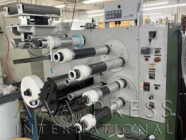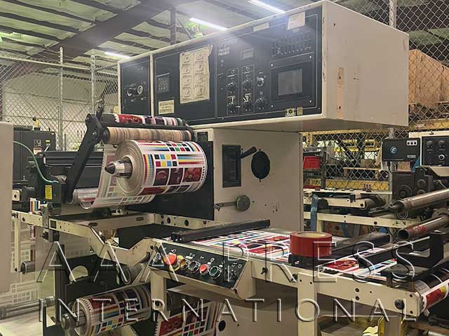 2021, Width: 13", Electric Edge Guide, Crush Cut Slitting, 2 Die Stations, 2 Product Unwinds, 3" Unwind Core Diameter, 30" Unwind Diameter, 2 Product Rewinds, 3" Rewind Core Diameter, 24" Rewind Diameter, 1 Waste Rewind, 24" Waste Rewind Diameter, 1 Laminating Unwind, 10" Incremental Length Counter, Individual Label Counter, Air Coreholders. Includes 1 semi-rotary flexo print station for UV spot or flood varnish, 1 semi rotary die cutting station, 1 full rotary die cutting station, over 1000 die cut specs in machine database, duplex product rewind, conveyor stacker, die pressure gauges & cold foiling assembly. Excellent working condition!