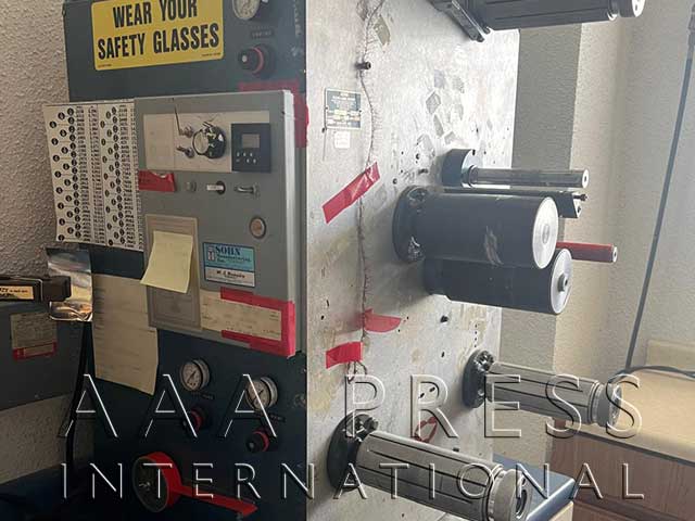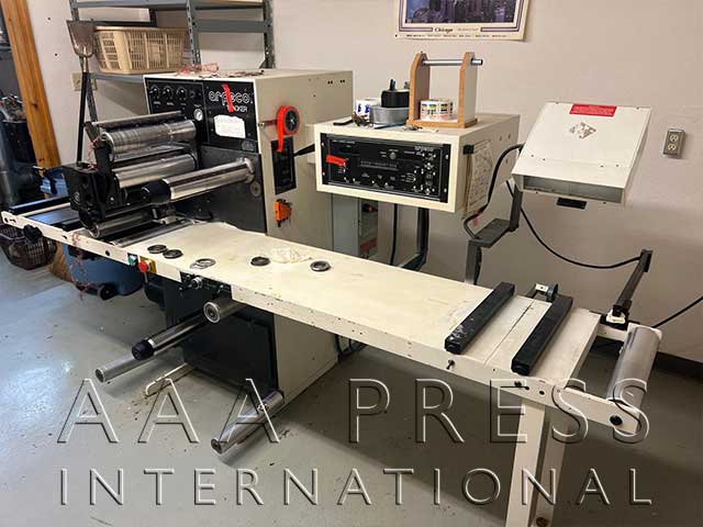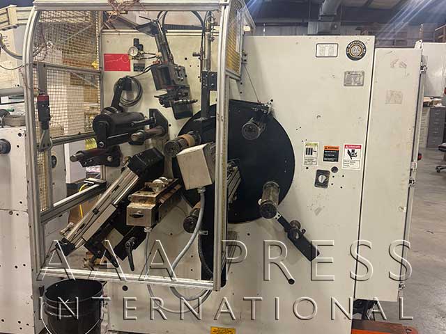 1998, Width: 9", 9" Print Repeat, 1 Product Rewind, 20" Rewind Diameter, 1 Waste Rewind, 1 Unwind, 20" Unwind Diameter, 1 Die Station, 9.000" Die Repeat, Hot Foil Stamping, (2) 9" x 9" Flatbed hot stamp stations & (1) Die cut/Embossing stations with eyemark re-registration for label printing, decoration or cost effective digital finishing.