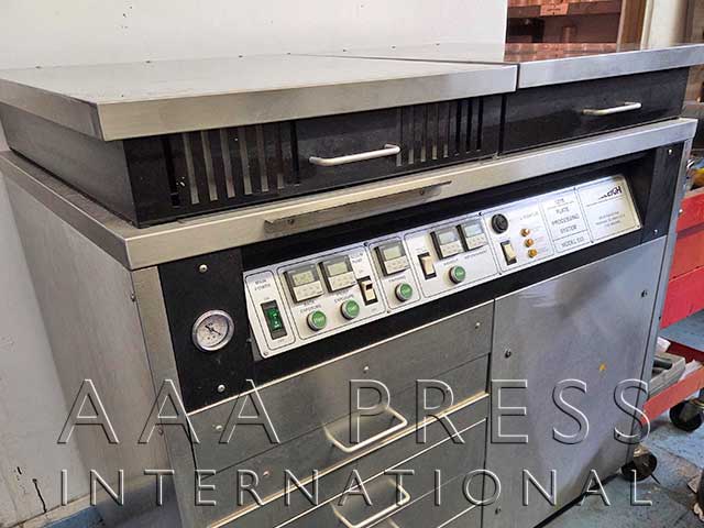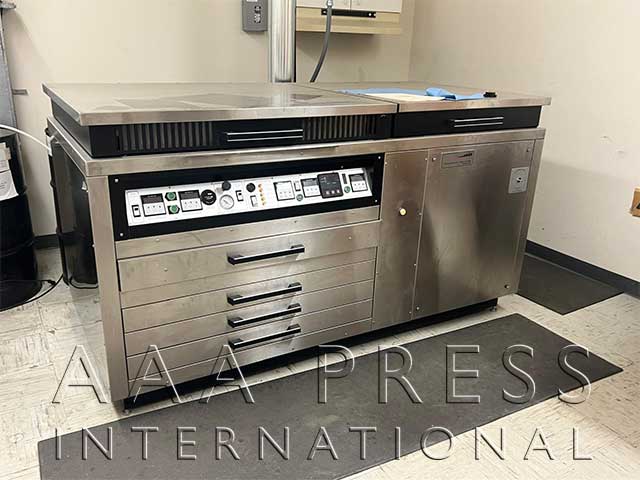 Length: 24", Width: 30", Flexo, Exposure, Solvent Safe Washout, Dryer, 3 Drying Drawers, Detach. All-In-One photopolymer plate making system. Includes large exposure bed with front and back plate exposure timers, rotary plate washout, 3 plate drying drawers, a plate finishing drawer and 55 gallon solvent barrels. Excellent condition.