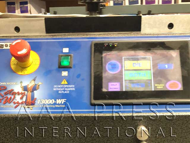 2019, Width: 13", Electric Edge Guide, Shear Cut Slitting, Underscoring Unit, 2 Die Stations, 10" Die Station Repeat, 1 Product Unwind, 3" Unwind Core Diameter, 39.4" Unwind Diameter, 1 Product Rewind, 3" Rewind Core Diameter, 39.4" Rewind Diameter, 1 Waste Rewind, Unilux LOL-5 Strobe Light, 10" Incremental Length Counter, 820 Maximum Speed. Fully Servo Drive machine with (1) full rotary servo die station with magnetic die cylinder/QC side load die install, die cart & die pressure gauges, 1 full rotary die cutting station with die pressure gauges, Grafotronic Sci-Fi Male/Female rotary slitting with auto knife setup, underscoring assy, active static bar and transformer for US power. High Speed Finisher in Excellent Condition!
