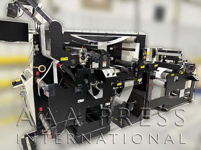 Diameter, 1 Laminating Unwind. "Like-New" Condition! Includes touch screen operator interface, servo-contolled semi-rotary 18" repeat magnetic die cylinder with re-registation mode for die cutting pre-printed labels and full-rotary die cutting mode for blank label production, and laminating unwind
